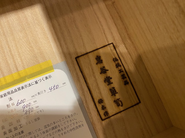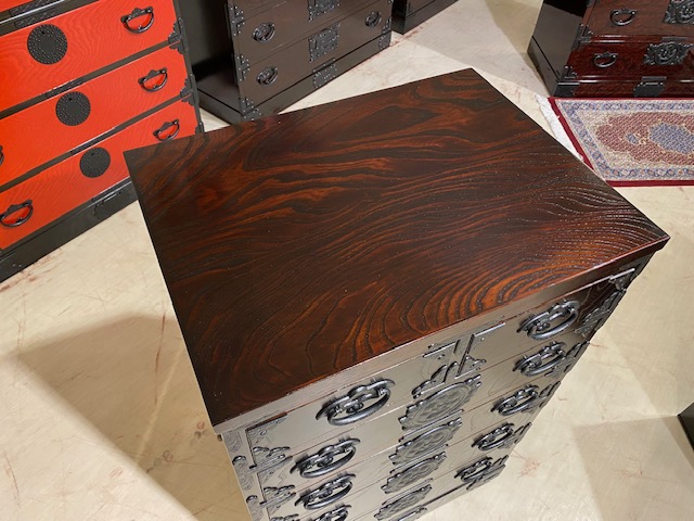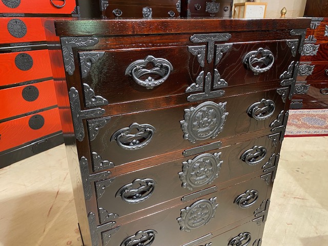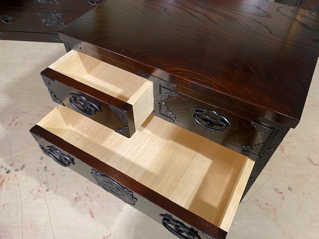 ホーム 商品一覧 立長タンス5段 岩谷堂箪笥 立長タンス5段 通常価格(定価) ¥422,000(税込) セール価格(特価) ¥211,000(税込) 品番 立長チェスト5段 ケヤキ・拭き漆塗り・南部鉄器金具 引出し内部:桐無垢 サイズ W600xD450xH900mm 引出し内寸 上段 W224xD390xH90mm 2段目 W505xD390xH100mm 3段目 W505xD390xH143mm 4段目 W505xD390xH143mm 5段目 W505xD390xH143mm 一覧へ戻る
