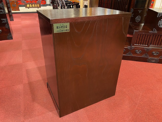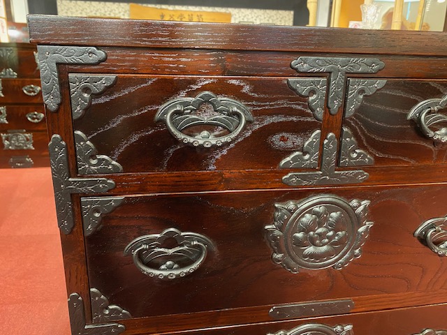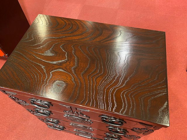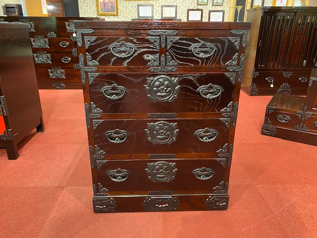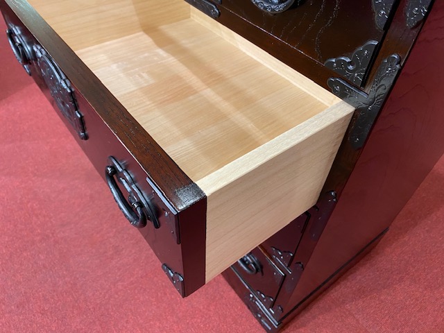 ホーム 商品一覧 立長タンス4段 岩谷堂箪笥 立長タンス4段 通常価格(定価) ¥385,000(税込) セール価格(特価) ¥192,500(税込) 品番 立長チェスト4段 サイズ:W600xD450xH800mm ケヤキ・拭き漆塗り・南部鉄器金具 引出し:桐無垢 引出し内寸 上段 W224xD390xH90mm 2段目 W505xD390xH143mm 3段目 W505xD390xH143mm 4段目 W505xD390xH143mm 一覧へ戻る