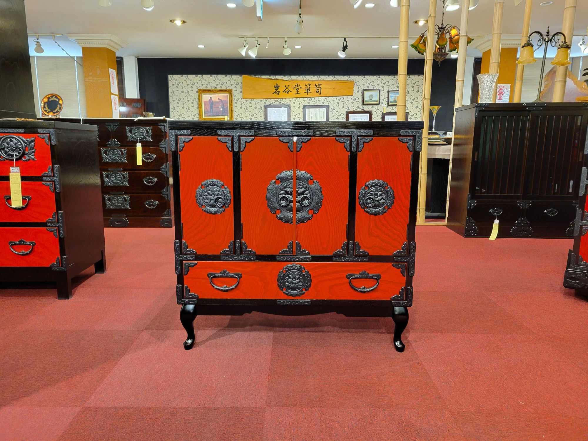 岩谷堂箪笥 猫脚キャビネット(赤黒)